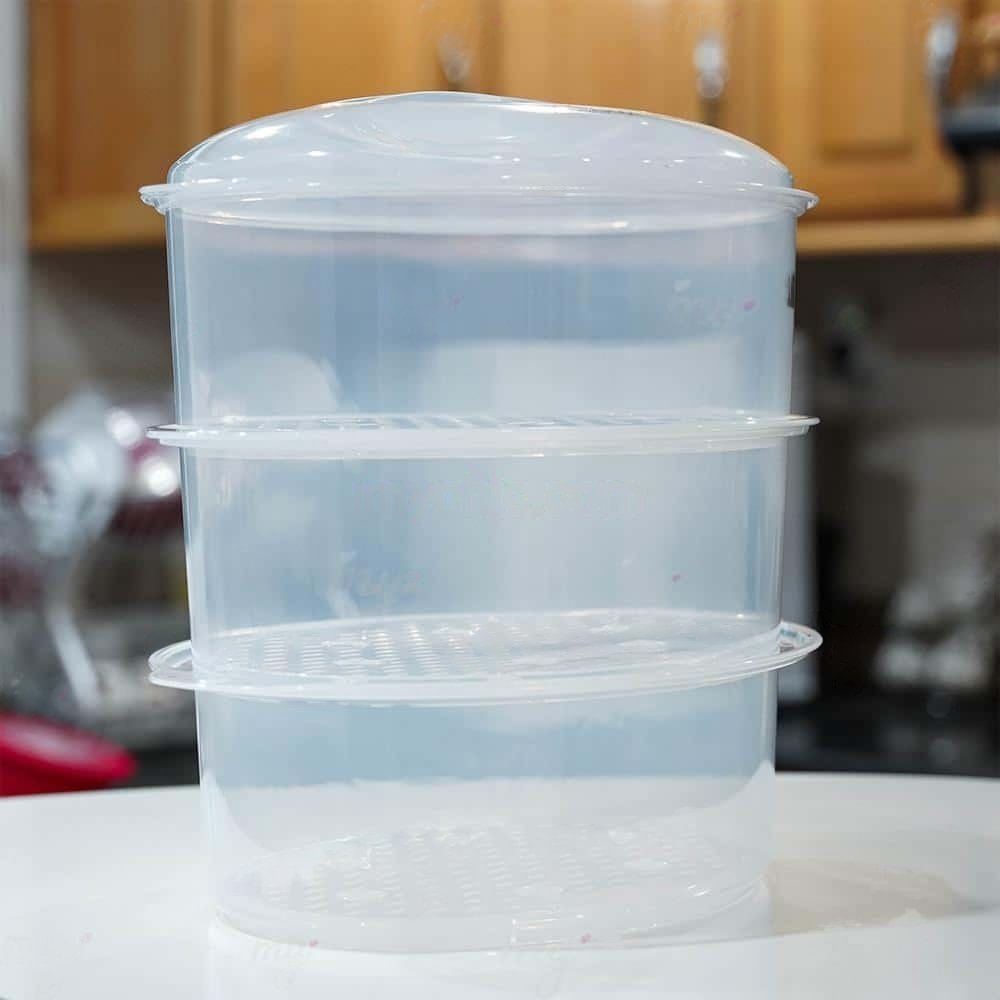 • Capacité totale de 9 litres : 3 paniers empilables de 3 litres chacun.