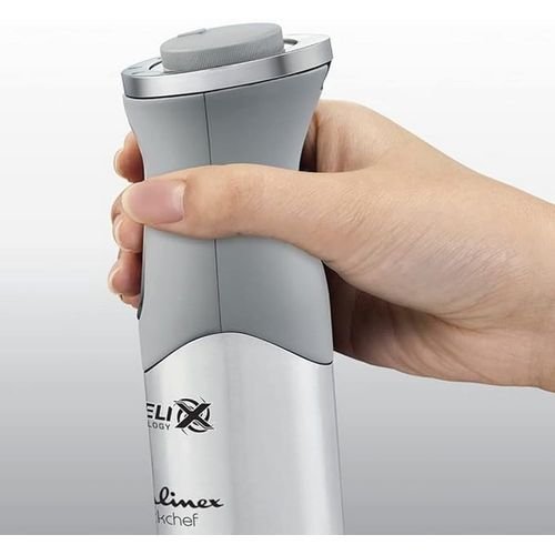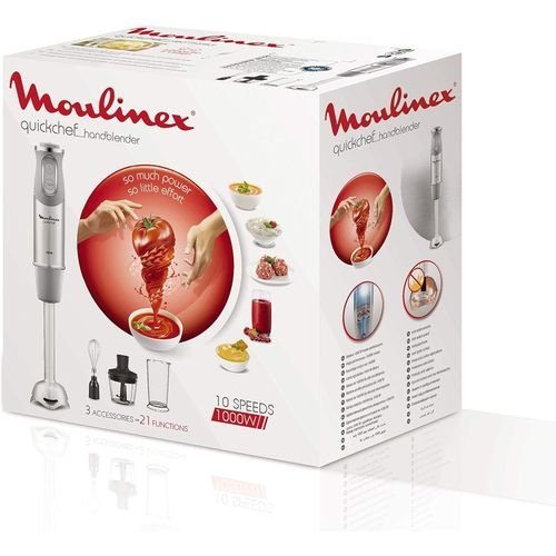 Avec le mixeur plongeur Quickchef de Moulinex, profitez d’une puissance optimale sans effort. Sa technologie exclusive Powelix associée à un puissant moteur de 1000W garantit un mixage haute performance et des résultats incroyablement lisses, même pour les ingrédients les plus durs. Réalisez facilement toute une variété de plats et gardez le contrôle avec 10 vitesses réglables à tout moment et un mixeur manuel doté de boutons intuitifs simples d’utilisation. De plus, un pied anti-éclaboussures et une poignée antidérapante assurent un confort d’utilisation optimal. Enfin, ses éléments amovibles passent au lave-vaisselle et sont faciles à nettoyer. .
