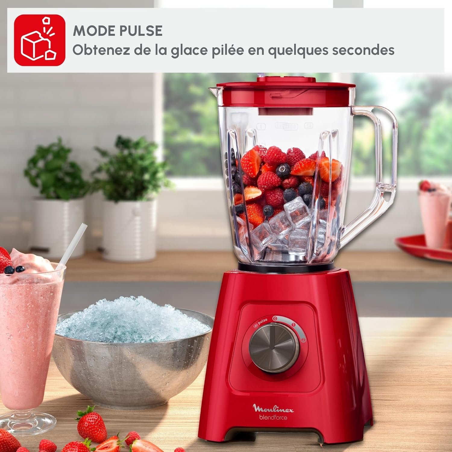 Moulinex Blender Blendforce, 600 W, Capacité totale de 2 L ,Rouge , LM420510